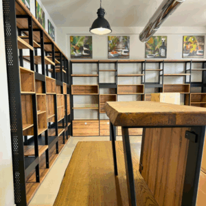 Lo stile Industrial è il tema dominante, caratterizzato da un’estetica decisa e versatile. Utilizzando materiali grezzi come il metallo e il legno rustico, siamo riusciti a conferire un’impronta visibile e un’atmosfera robusta, tipica delle fabbriche e degli spazi industriali riconvertiti.